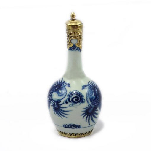 Nậm Rượu Vẽ Phượng Bọc Đồng Men Lam 200ml